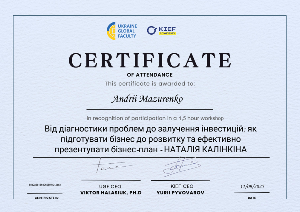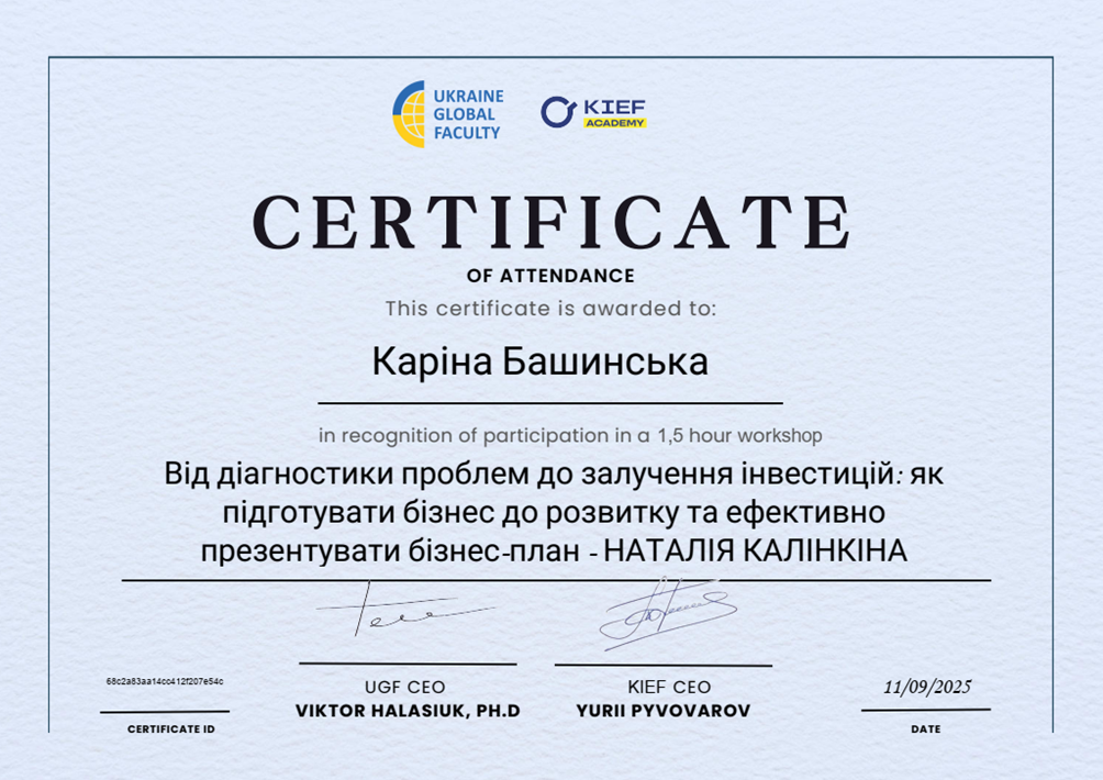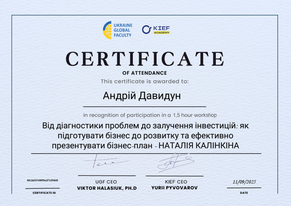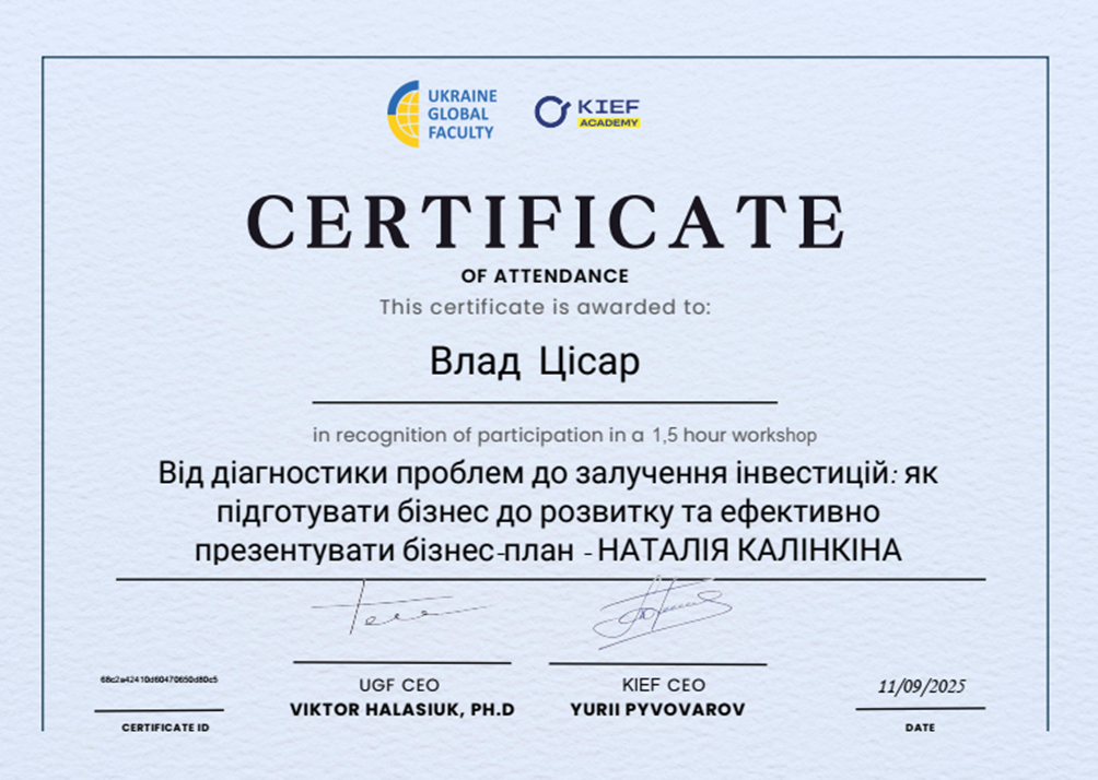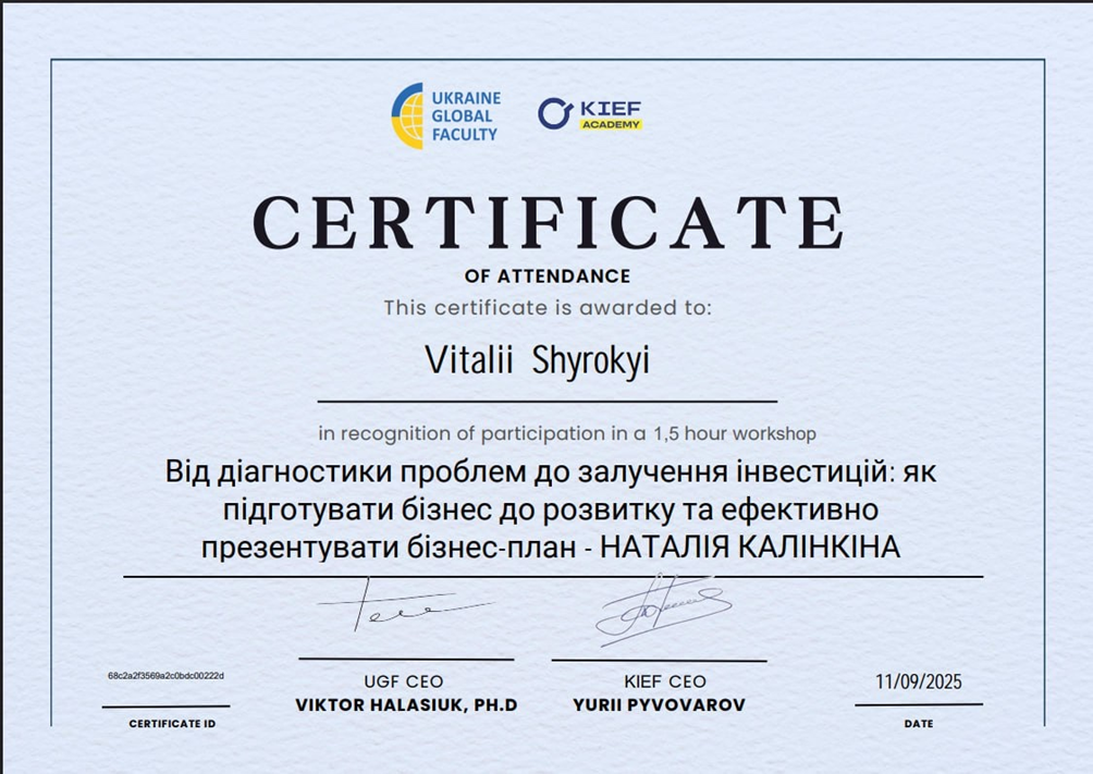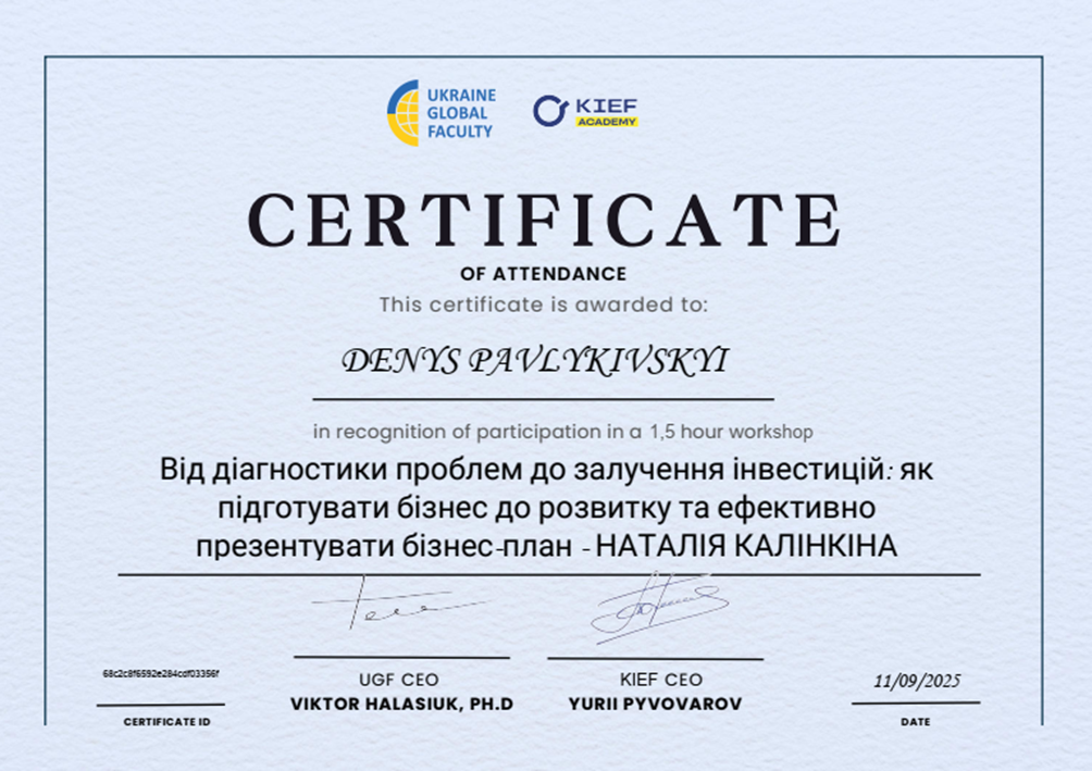 Студенти спеціальності 076 «Підприємництво та торгівля» активно беруть участь у неформальній освіті, здобуваючи додаткові знання та навички через тренінги, майстер-класи, дистанційні курси та вебінари. Цей процес доповнює їхню формальну освіту, надаючи практичний досвід у обраних сфера. Так, студенти 3 курсу ОПП «Управління підприємницькою діяльністю» та «Управління торговельним бізнесом і комерційна логістика» успішно опанували знання з підготовки та презентації бізнес-плану під час практико-орієнтованого семінару «Від діагностики проблем до залучення інвестицій: як підготувати бізнес до розвитку та ефективно презентувати бізнес-план» у розрізі навчальної дисципліни «Бізнес-планування в підприємницькій діяльності», зокрема теми 5 «Структура, послідовність розробки та оформлення бізнес-плану», що засвідчено відповідними сертифікатами.