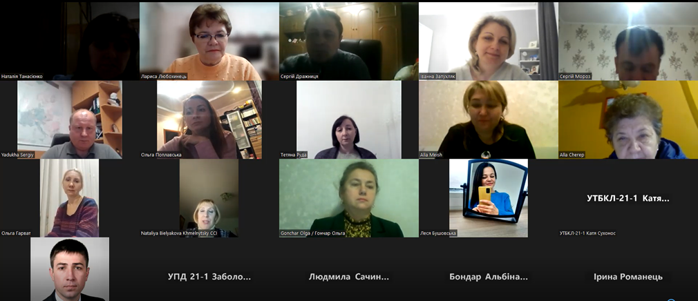 В дискусії-обговоренні прийняли активну участь декан факультету управління, адміністрування та туризму Хмельницького національного університету д.е.н., проф. Євгеній Рудніченко; декан економічного факультету Запорізького національного університету д.е.н., проф. Алла Череп; директор інституту економіки та менеджменту Івано-Франківського національного технічного університету нафти і газу д.е.н., проф. Іванна Запухляк; завідувач кафедри підприємництва, торгівлі та логістики Львівського торговельно-економічного університету д.е.н., проф. Ігор Міщук; президент Хмельницької торгово-промислової палати України к.е.н. Наталія Белякова; заступник виконавчого директора громадської організації Союзу промисловців і підприємців Хмельницької області Ірина Романець; представники реального бізнесу Хмельниччини