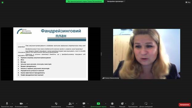 Під час лекції доповідач розповіла про основні джерела фінансування проєктів, сутність фандрейзингу та досвід роботи з інвесторами. Особливу зацікавленість у здобувачів викликала інформація щодо пошуку грантових конкурсів, процесу підготовки заявки на отримання фінансування.