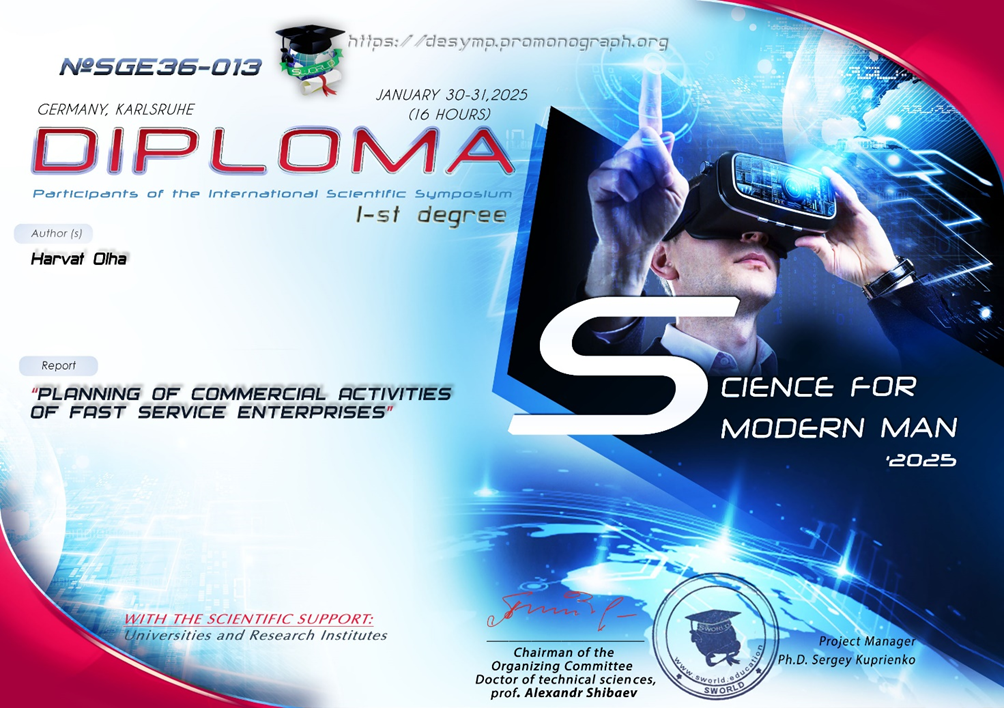 Harvat О. XXXІV International scientific and practical conference «World Trends in the Development of Scientific Progress» (August 14-16, 2024) Varna, Bulgaria.