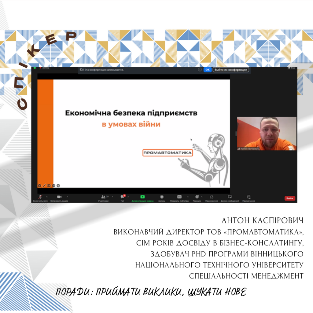 26 квітня 2024 року відбулось засідання «Школи молодого науковця», присвячене питанням економічної безпеки підприємств та розвитку конкурентоспроможності в умовах війни.